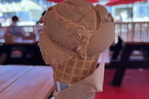 ▲サンタモニカピアで食べた男性の拳よりも大きそうなアイスクリーム!